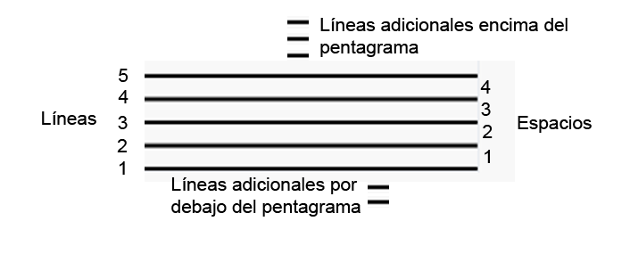 Entre esas líneas se numeran de abajo hacia arriba los espacios.